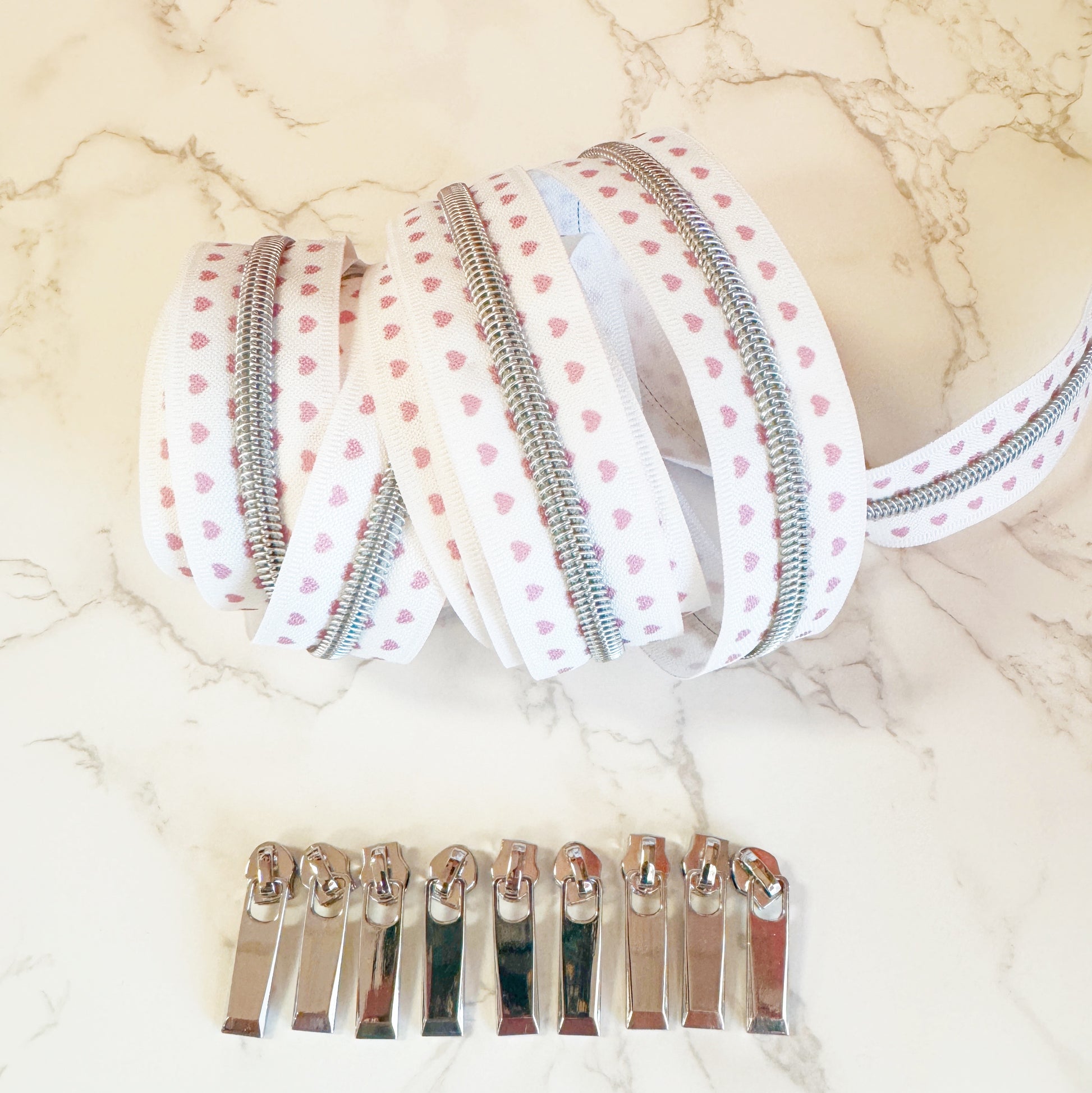 #5 SIZE ZIPPER TAPE (3 YARDS) WITH 9 SILVER COLOR PULLS